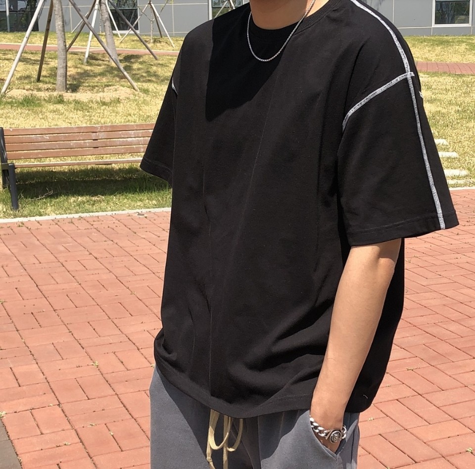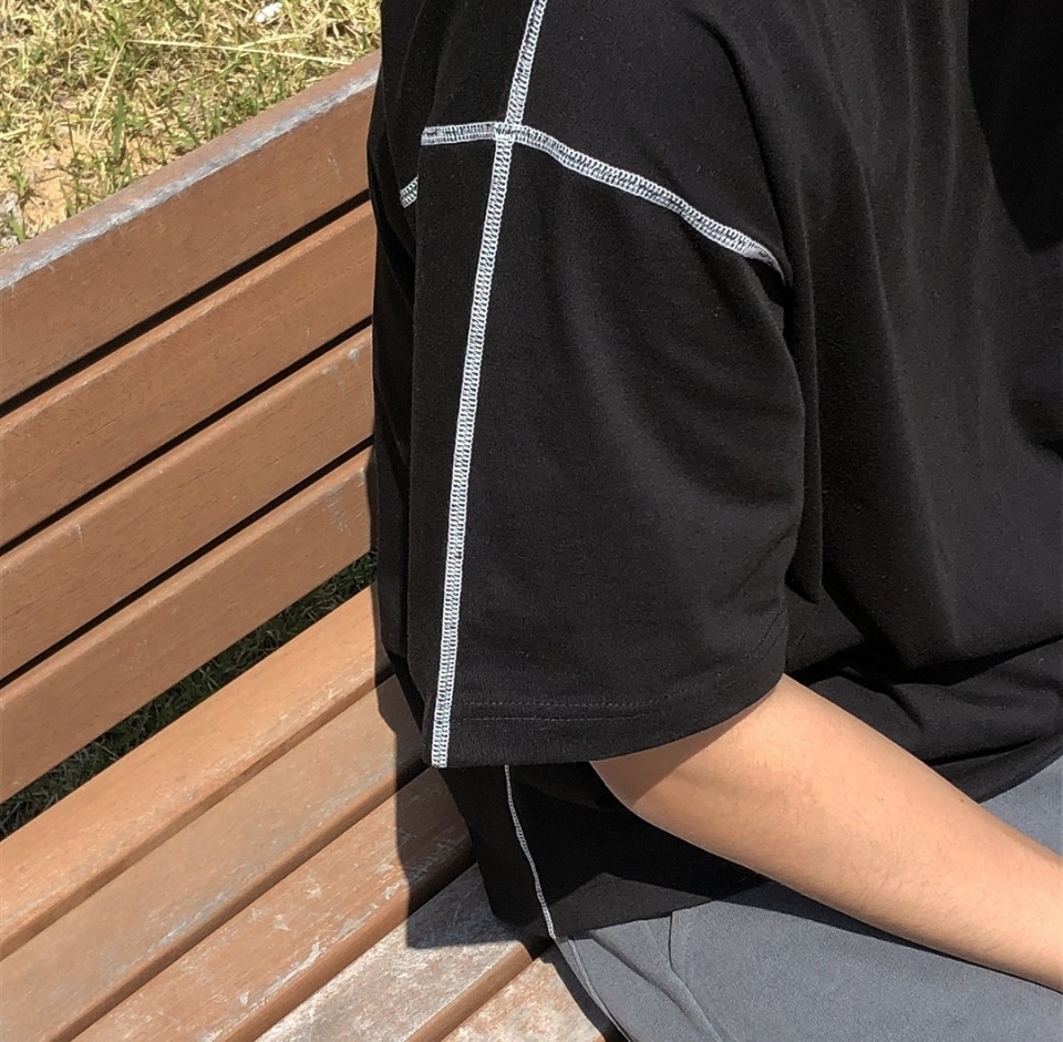 어깨에서 소매, 몸통 봉제선에 스티치로 포인트를 주었습니다.