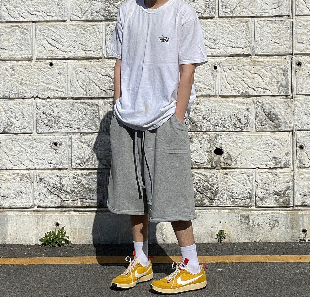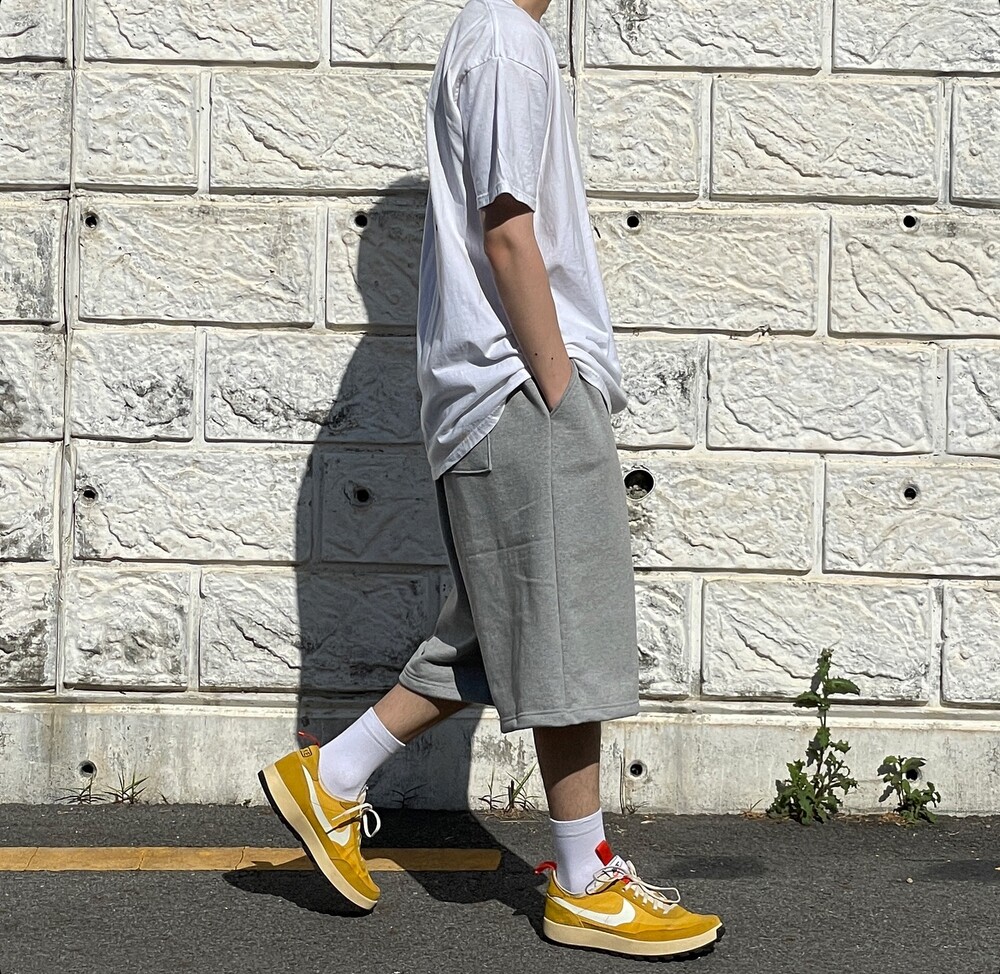 고중량의 기모없는 헤비웨잇 원단으로 제작한 버뮤다 스웻팬츠 입니다.