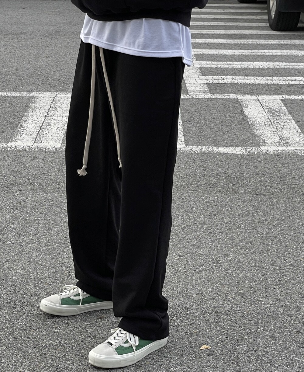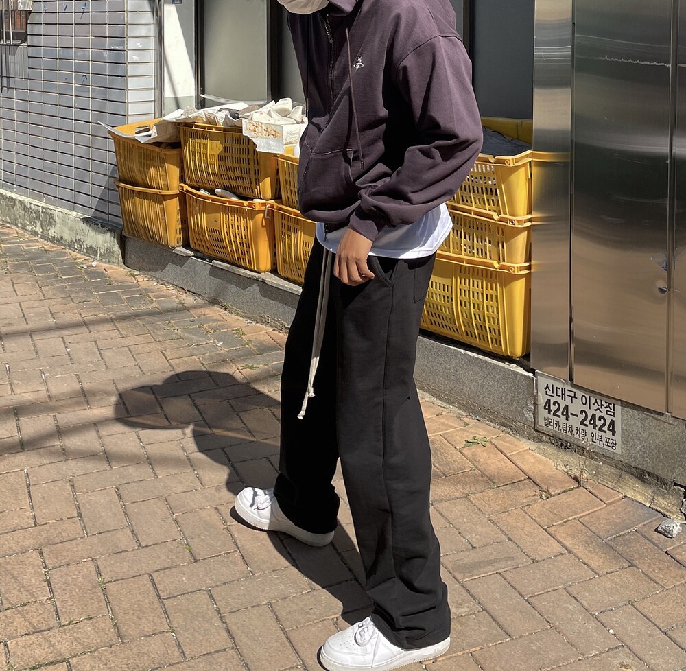 전체적으로 여유롭고 기장이 길게 제작된 와이드 팬츠입니다.